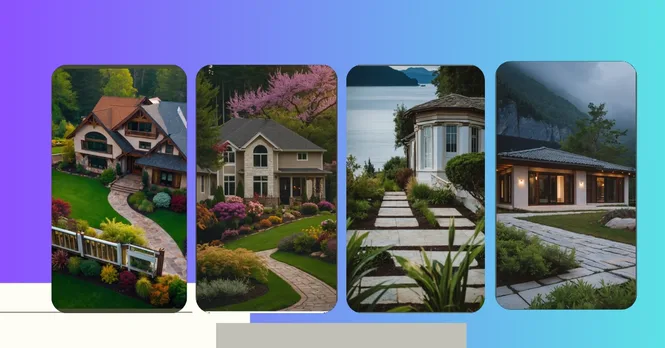 This house looks like it’s straight out of a fairytale! It’s got everything you could ever want: a big, beautiful lawn that’s perfect for playing tag with your friends, a winding stone path that looks like it leads to a hidden treasure, and even a fancy-looking fence with a view of the forest. It’s kind of like the house from your favorite movie, but even better!