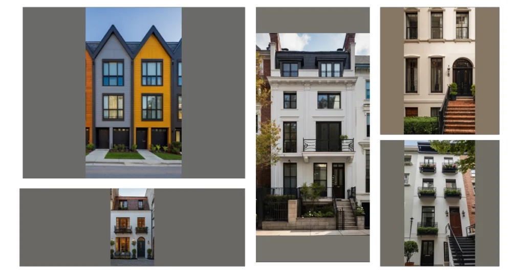 Seriously, can we talk about the different colors? It’s like they’re having a party and each townhouse got to pick its own fabulous outfit. The dark brown one is super mysterious and chic, the creamy white one is all sunshine and elegance, and the brick one next door is the slightly rebellious older sibling, reminding everyone that sometimes classic is best. The whole row gives off the vibe that they know they’re picture-perfect, but are too cool to actually brag about it. Pretty perfect, right?
