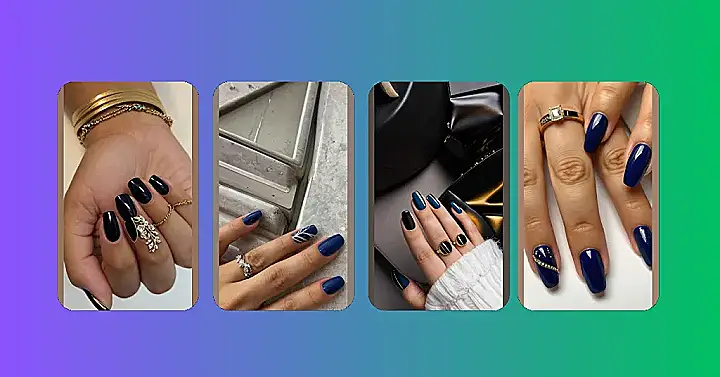 Check out these awesome winter nails! They’re like a fancy night out, but for your fingertips. Imagine cozying up by a fire with a hot cocoa, wearing a super stylish sweater, and showing off these gorgeous dark blue and black nails with a touch of gold – it’s the perfect winter vibe! They’re sophisticated, yet totally fun, and way better than accidentally leaving your gloves at school.