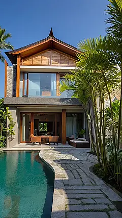 This isn’t just a house; it’s a whole Bali vibe distilled into one building! Imagine waking up, stumbling onto that balcony with a smoothie, and feeling like you’re starring in your own tropical movie. The pool looks so inviting, you could totally prank your friends by telling them you accidentally “fell” in… fully clothed, of course. Just try not to spill your smoothie!